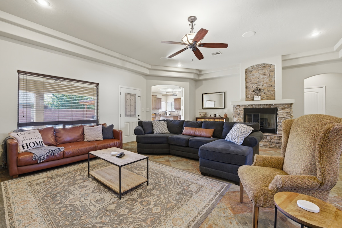 Welcome to our comfortable rancher in Alamogordo, a popular destination for Holloman Airman on TDY assignments. Our property offers four bedrooms and four living areas, perfect for rest and relaxation. The fully equipped kitchen is ideal for gourmet meals or entertaining, while the fenced backyard provides a great outdoor space with a patio, BBQ grill, and fire pit. Located in the heart of Alamogordo, we are sure you will love your stay with us.