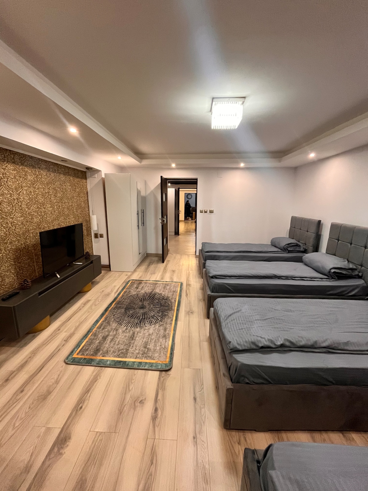 Fully new 50 m² apartment located within a private house divided into two independent units, managed by the Turcu family. The apartment has a private entrance and private parking, shared only with the owners. It offers a bright, spacious bedroom with a 160 cm bed, living-dining area with a fully equipped kitchen, Netflix, and a modern bathroom with walk-in shower and washing machine. Quiet residential area, 12 minutes from the city center, bus stop nearby and supermarket within walking distance.
