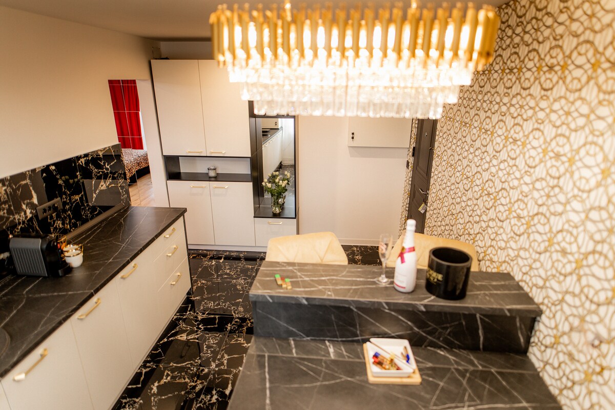 一間現代化的公寓,由2間臥室、開放式廚房、一間寬敞的浴室和一個露臺,可俯瞰ALBA CAROLINA歷史區域。它位於市中心,步行3分鐘即可抵達阿爾巴·尤利亞城堡、統一大教堂、統一博物館、城堡廣場等。臥室配有雙人床和智慧電視。 該物業提供免費停車位、WiFi、空調、每間客房均配有電視、設備齊全的廚房。