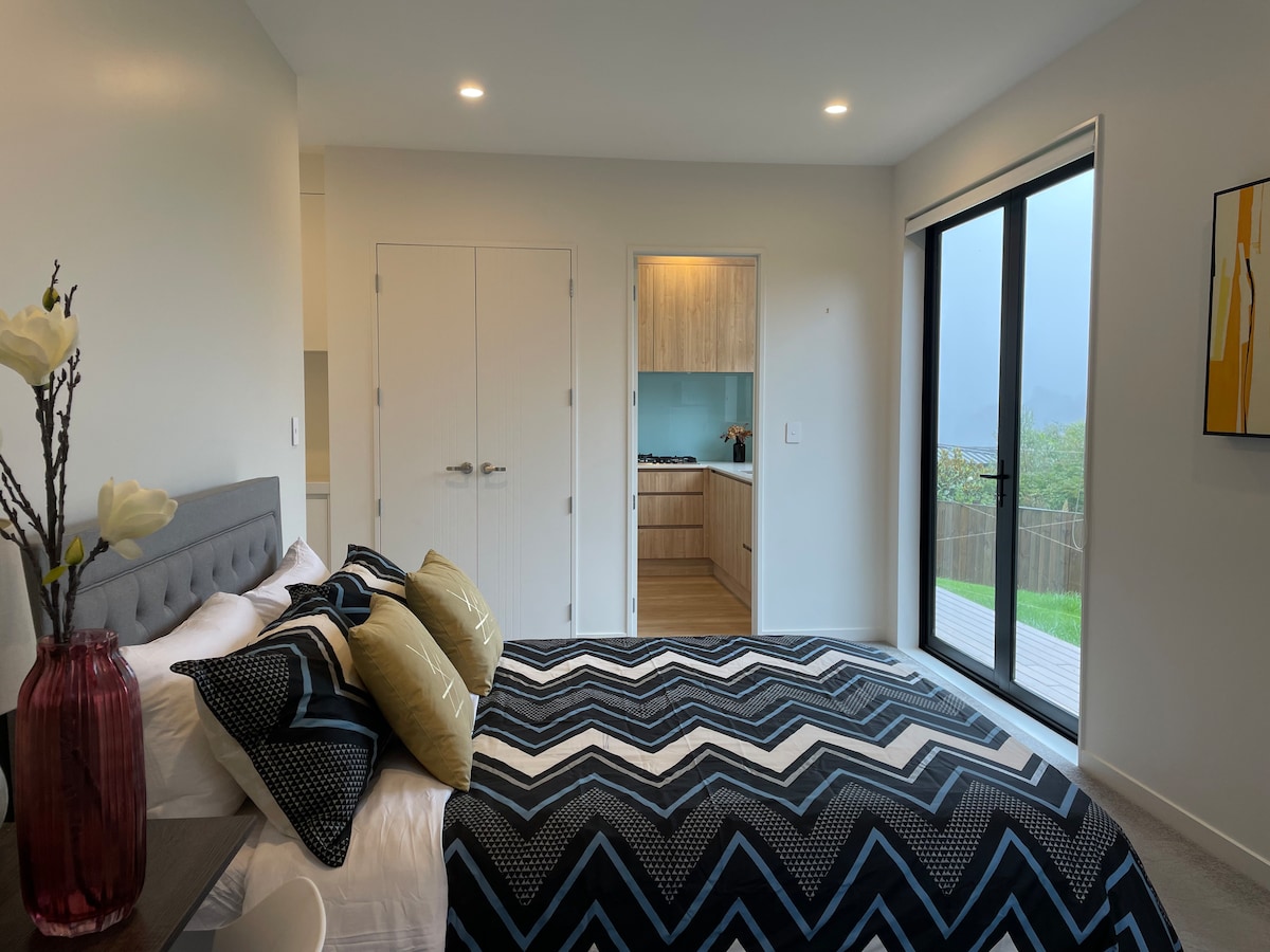 Kick back & relax in this calm, stylish space. Spacious 1 bedroom living with great outdoor flow. This will feel like home away from home. Perfect for trips to Auckland for special events, business, sports or a couples weekend away. Walking distance to Mairangi Bay beach, cafes, restaurants and supermarket. Handy location for the Millennium and Albany too.