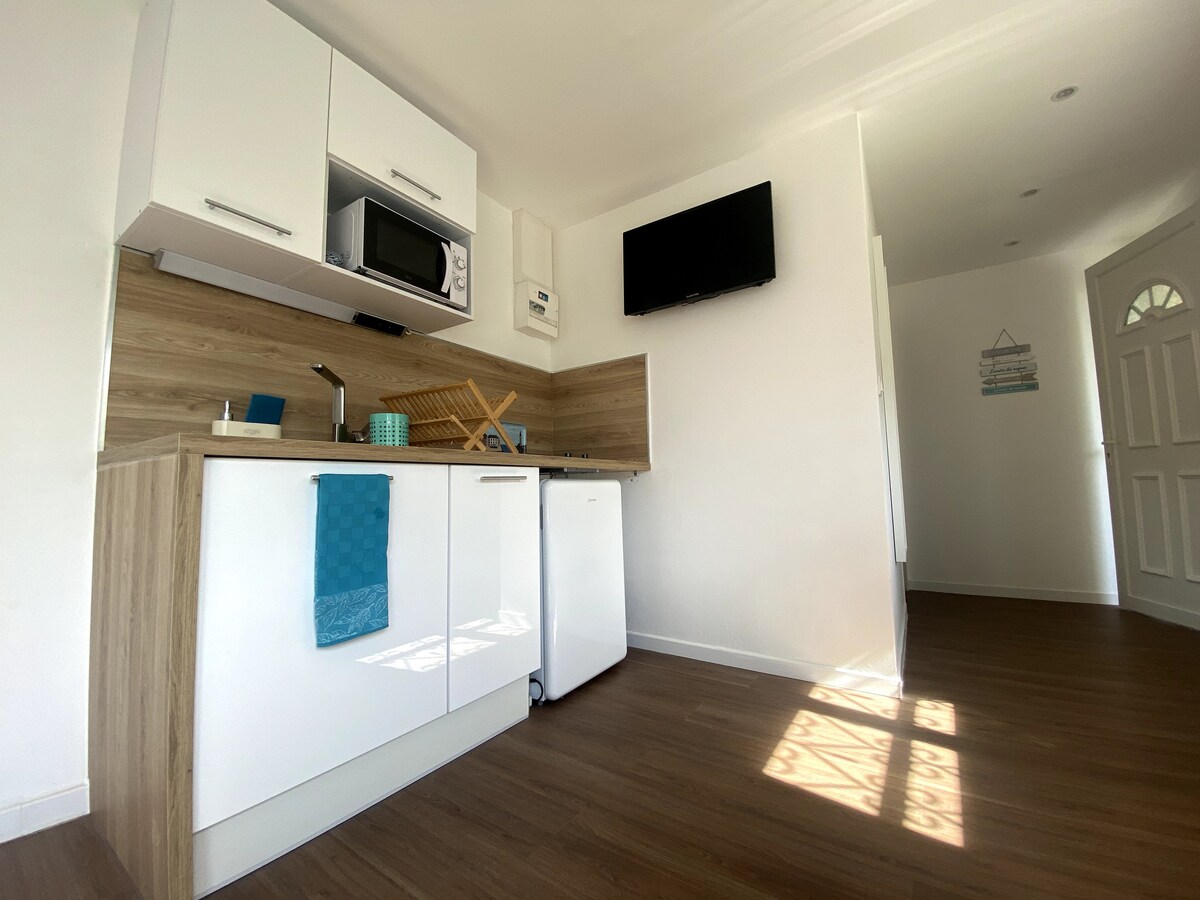 在這個安靜優雅的住所放鬆身心。 這間 30 平方公尺的單間公寓位於安靜的區域,為您提供所需的舒適與寧靜。 有了 15 平方公尺的露台,您將有機會呼吸新鮮空氣,而無需走到街上。 對於散步者來說,住宿距離農業小徑步行8分鐘。 作為一名旅行者,根據我的經驗,我決定為您提供優質的床上用品,讓您可以度過愉快的夜晚。