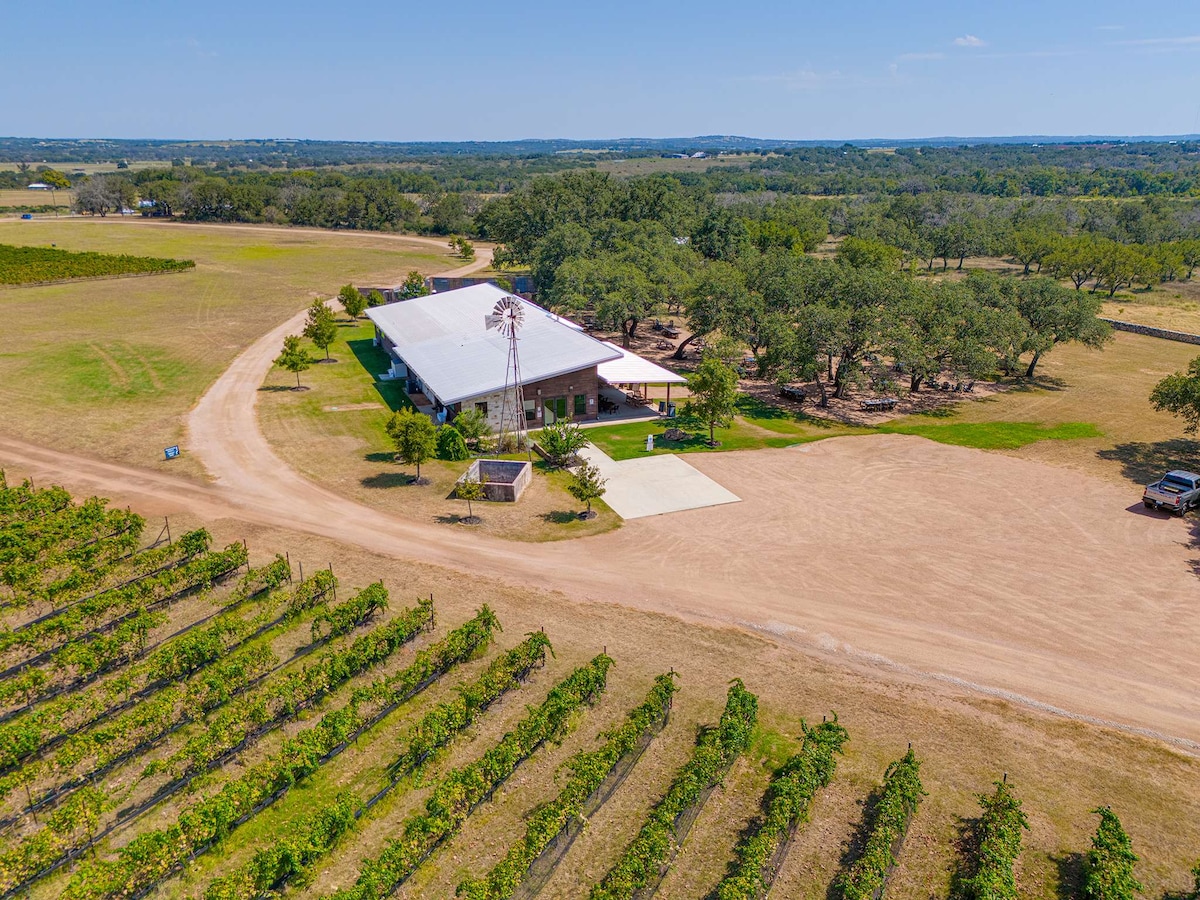 在我們的建築穀倉探索終極德州山區度假勝地,坐落在60英畝的野生動物牧場上。 在一條寧靜的道路盡頭,你會找到寧靜、空間和私隱,但距離當地酒莊僅幾分鐘路程。 透過添加健康套餐來提升您的住宿體驗,在我們的16英尺木柴桑拿浴室和7英尺雪松混合熱水浴缸(電和木材)中恢復活力。 有興趣舉辦親友聚會、私密婚禮或度假? 請聯絡我們以討論可能性。