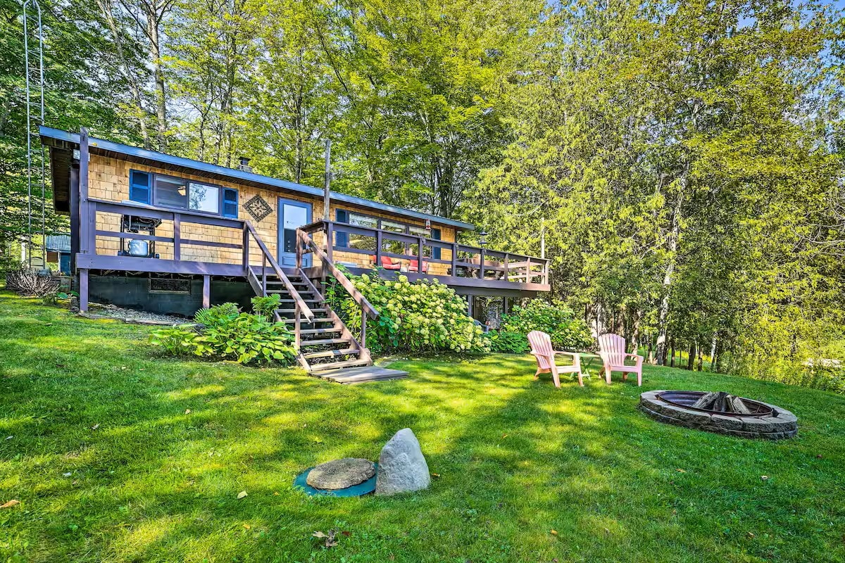 入住我們位於哈伯德湖(Hubbard Lake)的全套2臥室1浴室房源。享受100英尺的湖景和壯麗的景色。在樹木之間放鬆身心,享受戶外座位、吊床、烤架、火坑和俯瞰湖泊的露台。房源設有碼頭,可供游泳、划獨木舟和獨木舟。室內有全新的客廳家具、一張標準雙人床尺寸的拉出式沙發、遊戲區和辦公桌。提供洗衣機和烘乾機,方便您使用。立即預訂這間湖畔度假屋,享受寧靜假期!