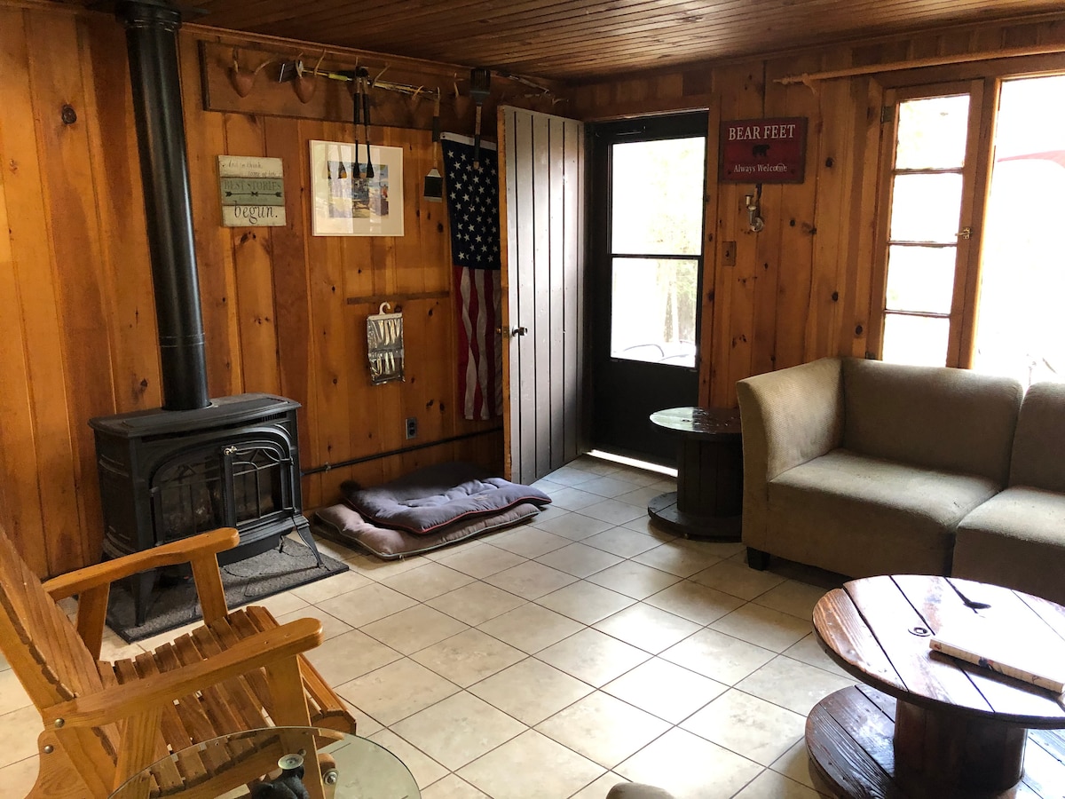 Take it easy at this unique and tranquil getaway. Large 13 X 40 room with Queen bed, sofa bed, twin fold up bed, fridge, microwave, coffee maker and dining area. 2.5 miles from the north end park with boat/kayak launch and kids play area. North end also has gas station, stores and taverns. Room to park your boat for a fishing getaway. Bring your outdoor chairs to sit by the fire pit. A charcoal grill is available for your use. Bedding and towels are provided.