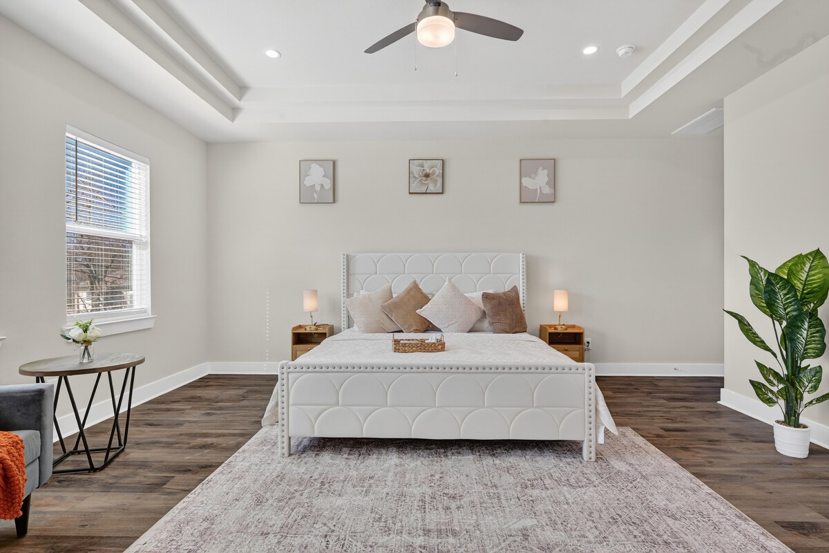 位於休士頓北部的現代度假屋,經過全面翻新,距離喬治布希洲際機場 (IAH) 僅 13 分鐘車程。這棟三房兩衛的房屋最多可容納 8 位房客。 主套房配有私人浴缸和熱水浴缸、設備齊全的廚房、開放式客廳和用餐區、洗衣機和烘乾機、露台戶外廚房、工業冰箱和藤架。 友善的社區,有4輛車的停車位,距離FM 1960、餐廳和Willowbrook Mall僅幾分鐘路程。 可選用私人機場接送服務。