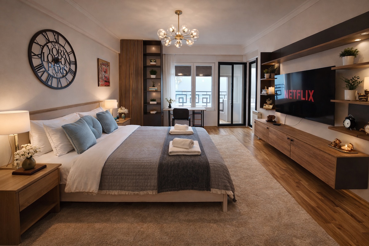 Modern & Cozy Studio | 15-Min Walk to City Center Stay in a stylish and comfortable studio located in a quiet yet safe neighborhood, just a 15-minute walk from the city center. You’ll have everything you need at your doorstep, including restaurants, cafés, bars, supermarkets, pharmacy and a gym. If you want to explore further, well-connected bus lines make it easy to reach all parts of Belgrade.