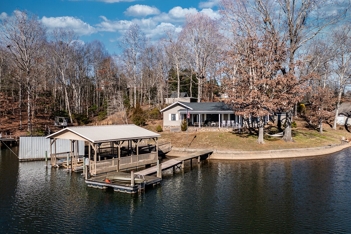 Take it easy at this unique and tranquil getaway. Newly remodeled in a peaceful, cozy atmosphere. Enjoy the amazing lake and mountain views, beautiful sunrise and sunsets on the main channel of Lake Hickory. Go fishing, swimming, floating or just enjoy the hot tub. Perfect location with quick access to dining, shopping, grocery, golfing, Lenoir Rhyne University, 2 local hospitals and basically anything you would need within a 15 minute drive. All the amenities of home! 2 Smart TV’s, fire pit!