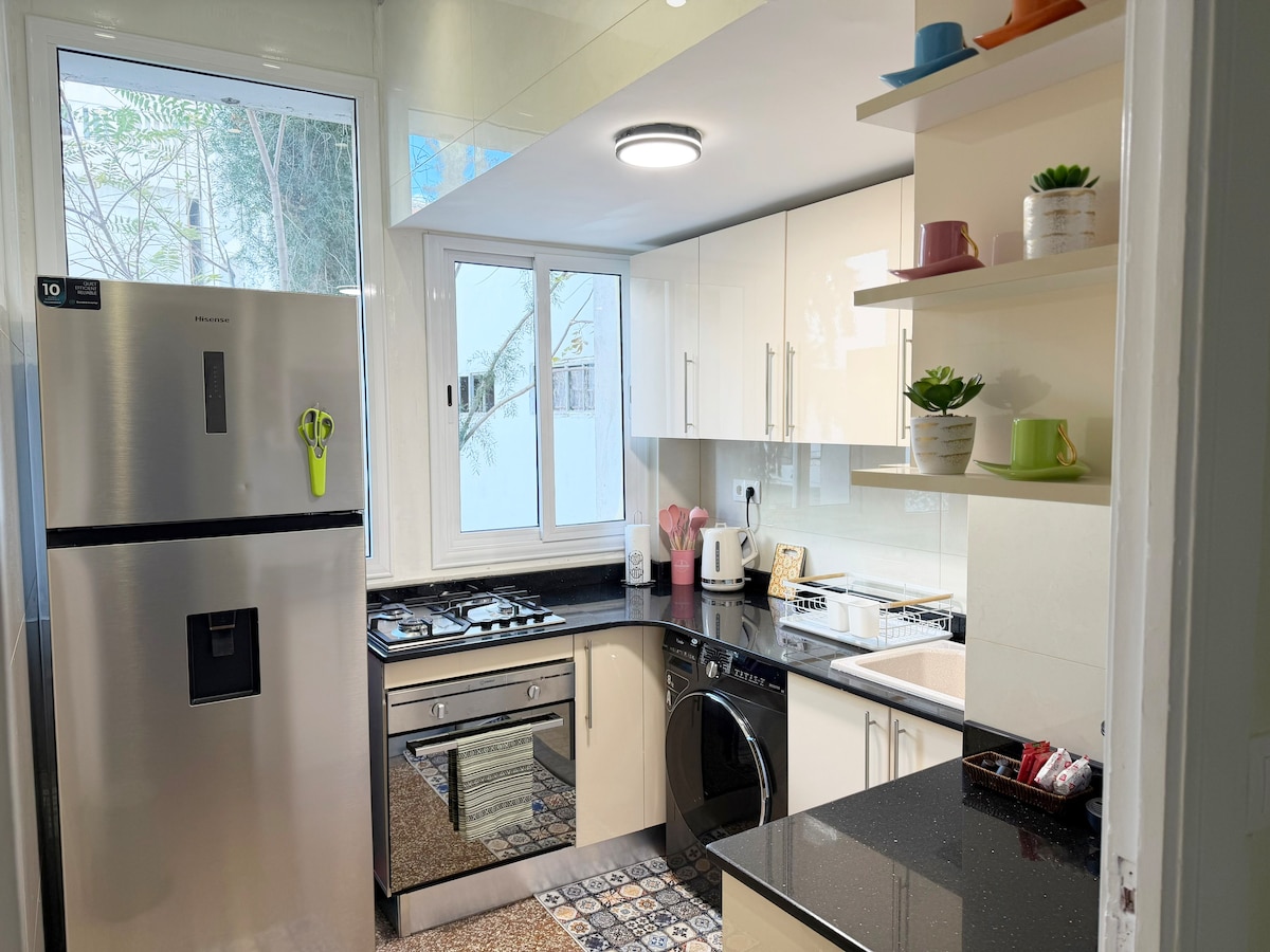 歡迎來到我們 48 平方公尺的優雅 F2,由著名建築師全面翻新,結合現代美學與飯店舒適度。這套公寓坐落在阿爾及爾市中心著名的哈西巴·本·布瓦利街 (rue Hassiba ben Bouali),距離地標景點僅幾步之遙,提供無與倫比的住宿體驗。