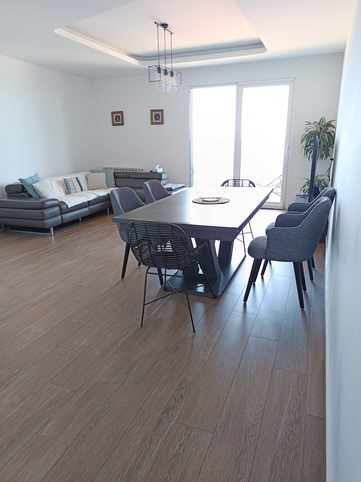 您好, 我出租我186平方米的明亮高樓公寓,位於阿爾及爾最受歡迎的地區之一的安全住宅(攝影機、保安、入口處的徽章和電梯棒) 位於7樓,有電梯, 3個陽臺可欣賞兩個外觀的無遮蔽景觀。(每個著陸公寓只有一間)和3間浴室,其中一間配有按摩浴缸 這個街區地理位置優越,適合參觀阿爾及爾,距離超級中心、購物中心和海灘不遠處