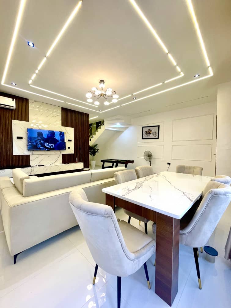 位於拉各斯Magodo Phase 2 Shangisha的明亮現代化2居室公寓。 享受時尚舒適的2居室公寓,配備設備齊全的廚房、免費Wi-Fi、配有DSTV的智能電視和工作空間。 在共用的綠色草坪休息區放鬆或社交,配有四張椅子和可調節的遮陽篷。 非常適合家庭、商務旅客或週末度假,前往Ikeja、拉各斯島和機場都很方便。 同一棟大廈有兩個這種2居室公寓。