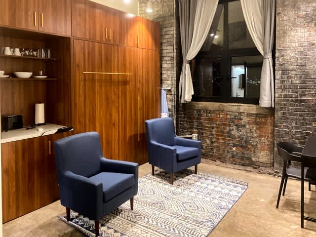 快來我們的新位置放鬆身心吧! 適合工作和休閒! 這座歷史悠久的倉庫已被改造成公寓,但仍然具有原始的建築特色! 享受工業現代美學,配有15英尺高的天花板、磚牆、原始混凝土地板和中庭天窗,自然光線充滿了空間。 這些單位設備齊全,還有微型廚房(微波爐和迷你冰箱) ,以及您需要的所有配件,讓您只需放下行李箱即可開始