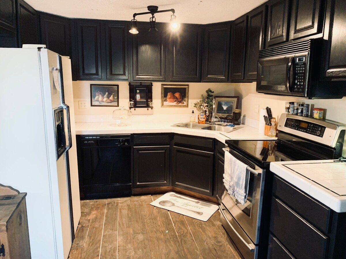 廚房: -咖啡壺、單人牀、法式壓縮機、摩卡濃縮咖啡烘焙機 -各種咖啡和茶,搭配糖漿調味料和奶油 鍋碗瓢盆 -攪拌機、攪拌機、烘焙牀單、攪拌碗 -超過15種烹飪調味料 新鮮水果 -銀器(成人和兒童) -玻璃杯、盤子和碗 -配備飯店品質牀單的標準雙人牀 -牀單因供應或一年中的時節而異 地點 -市中心- 2分鐘 - Schoonover Park-1分鐘 -UNOH-8分鐘 -SRMC-6分鐘 -LMH-5分鐘 -INEOS -10分鐘 -附近有30家商場餐廳