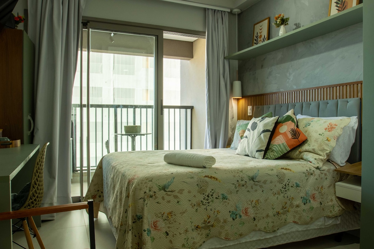 全新公寓,現代風格,高標準,地理位置優越,可欣賞安聯公園( Allianz Parque )的美景。 毗鄰商場、各種商店、交通工具、公園、旅遊景點和商業大樓。 單間公寓設備齊全,配有舒適的標準雙人牀、智慧電視和網路。 廚房配備所有餐具、爐頭、雪櫃和微波爐。有停車位(輪轉)。 一切都近在咫尺,溫馨舒適,非常適合體驗美好時刻。