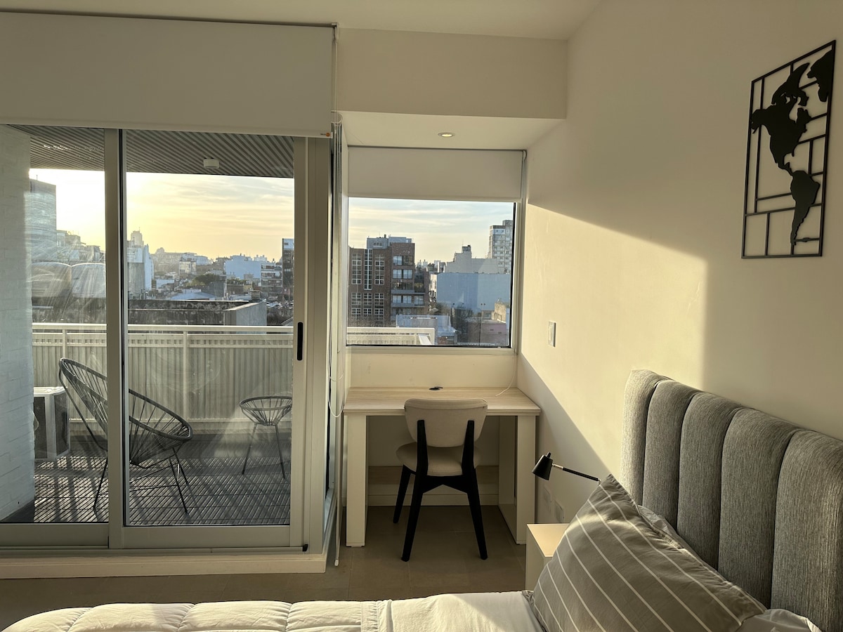 Welcome to Buenos Aires! 🙋🏻♀️ I'm Gabi, and this is my studio in the heart of Palermo Hollywood ♡ A fully equipped and chic studio, very bright and quiet, located on Guatemala Street.✨ Just a few meters from Los Arcos Mall, the best restaurants, and great specialty coffee shops ☕️ The studio features: High-speed Wi-Fi 🛜 4K Smart TV 🖥️ Full kitchen 🧑🍳🍳 Air conditioning ❄️ Heating 🌡️ A landscape view of the city🌇 Ideal for those who want to visit and get to know Buenos Aires from the best area of Palermo☀️