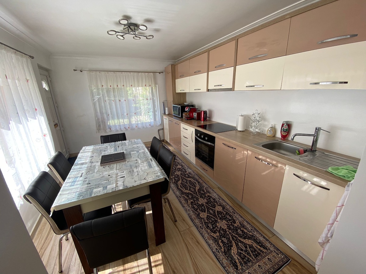 歡迎家庭入住的度假屋,位於大自然中,是一個非常好的區域,您可以在這裡練習如徒步、越野旅行、靠近保溫水療度假村、由天然產品製成的美食等活動。 最多可入住10人。這棟房子有3間雙人牀臥室、1間單人牀臥室、1間帶沙發和大餐廳的客廳、2間浴室、2個開放式露臺、帶泳池和燒烤的大花園、設備齊全的戶外廚房。 包括早晨的咖啡、茶和糕點!