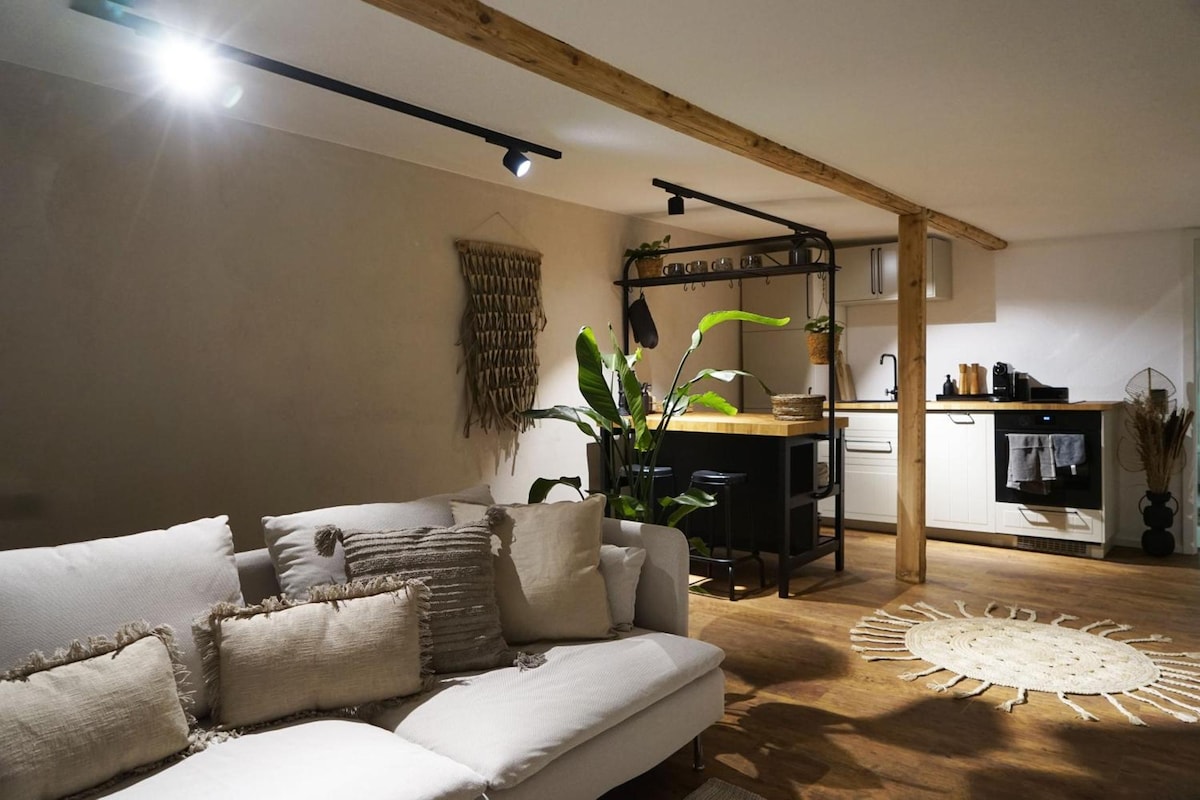 天堂葡萄酒產區的設計公寓 - 普法爾茨托斯卡納的現代舒適 體驗現代設計、溫馨的裝飾和鄉村魅力的完美融合。這間時尚的公寓內外均採用白色裸露混凝土建造,約65平方公尺的空間寬敞明亮。私人露臺俯瞰托斯卡納花園,讓您放鬆身心。 位於赫克斯海姆山區著名的葡萄酒產區「天國」,是享受寧靜與樂趣的完美之地。