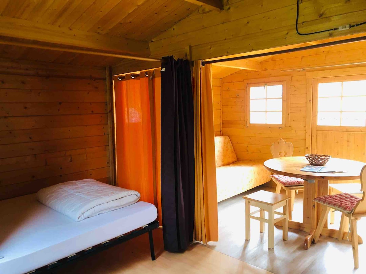 L'attrape Reves..獨立私人房間 12 平方公尺,配有私人花園和露臺..木製小木屋風格。 140 公分床、淋浴間、廁所、電視、WiFi、迷你冰箱、床單和毛巾、夏季可使用水上自行車的泳池、車輛可停放在有圍欄的花園中、獨特、安靜、自然、寧靜、可應要求提供早餐,每人需額外支付 8 歐元。
