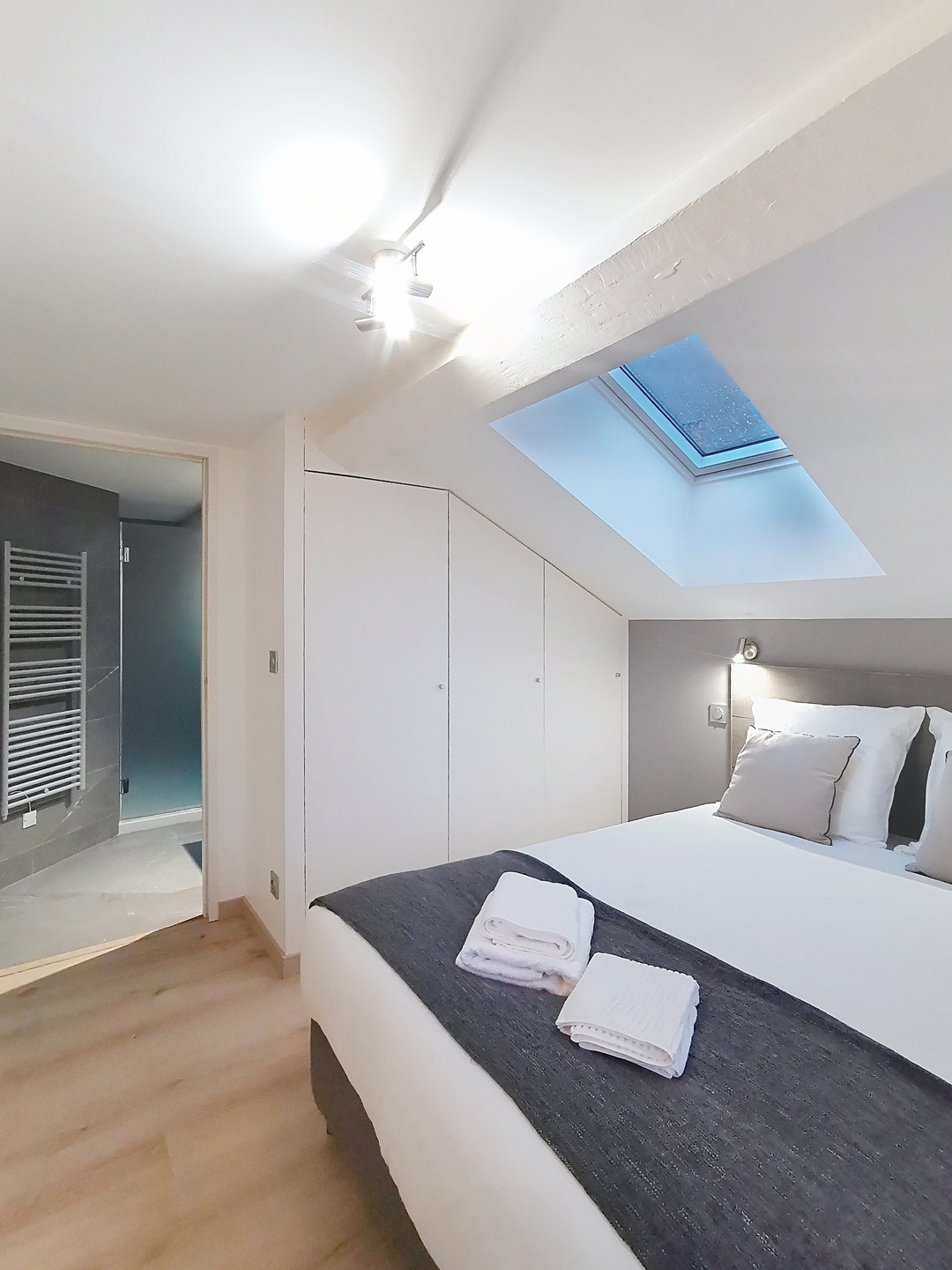 Berriat Kstore ,位於一樓, T2著名的飯店要求: Excellence。 優質的設備與服務和家具為您帶來溫馨舒適的環境。 探索正宗魅力和極簡主義現代舒適的完美結合。 大樓坐落在格勒諾布爾市中心的內院,靠近所有設施和公共交通工具。 3牀公寓,翻修過,僻靜且有空調。