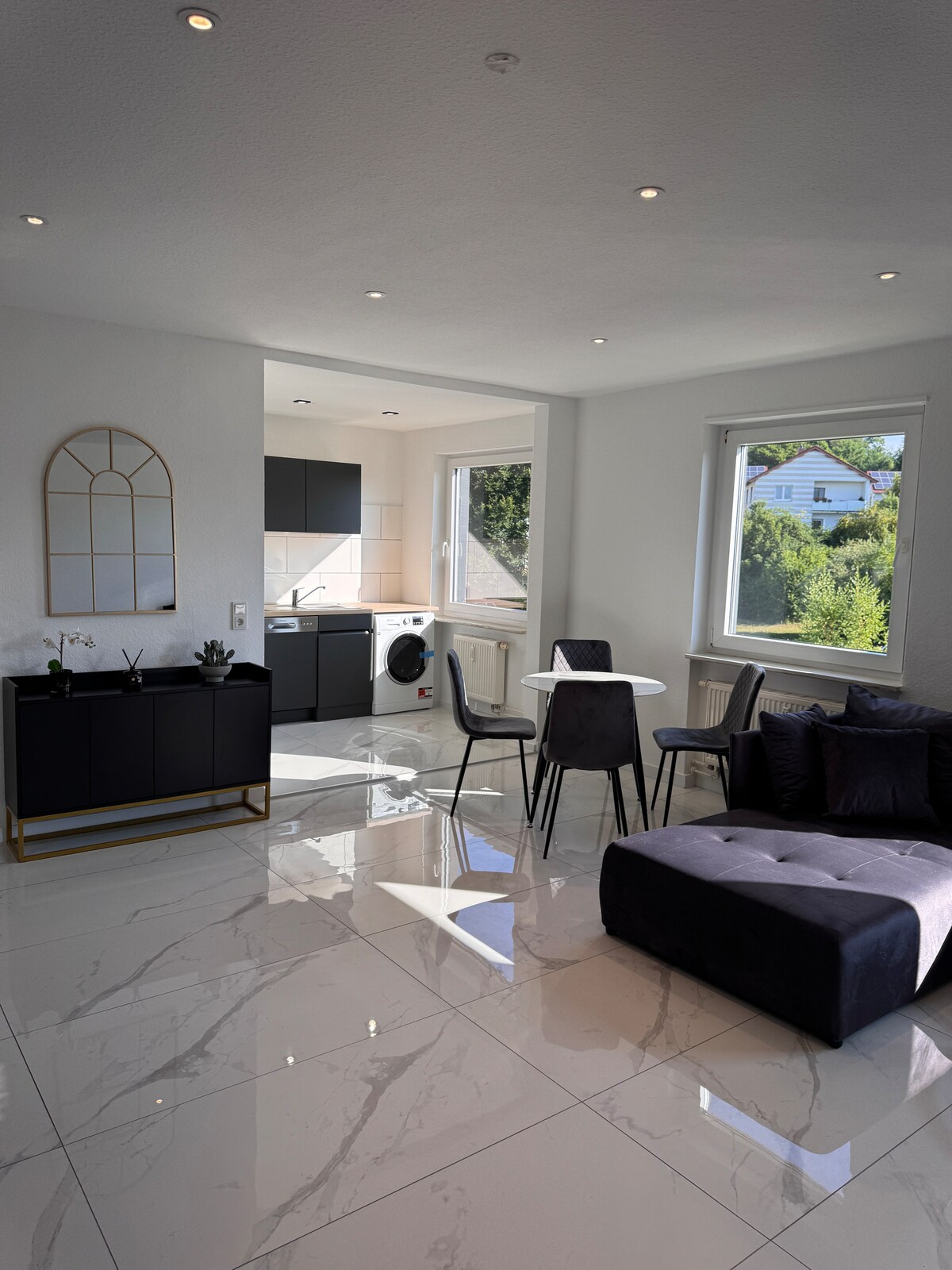 我們的房子位於市中心,有很多購物機會,銀行, 步行即可抵達服務供應商和餐廳 幾分鐘。距離Würzbach池塘約800公尺, 附近有巴士站和火車站。 70平方公尺,大餐廳/客廳,設備齊全的廚房, 寬敞的浴室,配有步入式淋浴間/洗手臺/馬桶, 臥室配有大雙人牀、 洗衣機。