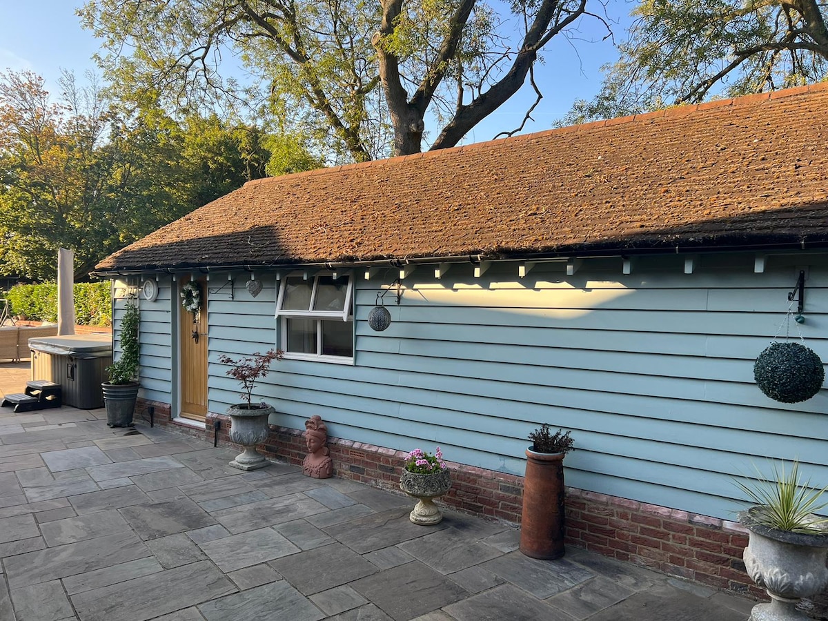 我們的獨立小屋坐落在我們的門禁房源內,俯瞰按摩浴池和馬廄院。它有2間臥室和一個大型休息室,有2套法式門,可欣賞美景。電視、餐桌和4張椅子和舒適的沙發。設備精良的廚房,備有炊具、微波爐和烤麵包機。浴室配有瓦斯中央暖氣和電熱毛巾架。小屋外有私人停車位,從Southend機場飛來的旅客可免費停車。提供嬰兒床和高腳椅。DVD播放器和DVD