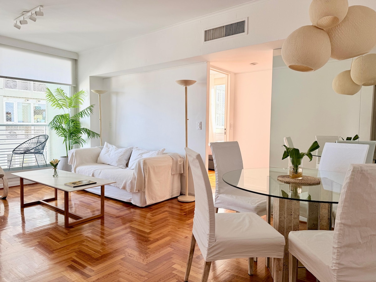 Wake up in the heart of Palermo Chico, on a bright 17th floor with open views and thoughtful design, inside the exclusive Las Plazas complex. Pool, gym, sauna, laundry, 24/7 security, queen bed, 50” Smart TV, fast WiFi & desk. Family-friendly (crib, high chair & window safety net) and ideal for business travelers. 15 min from Aeroparque, steps from the best bars and restaurants. Your perfect Buenos Aires base.