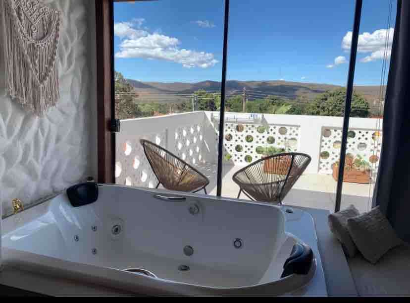 迷人的套房,可欣賞按摩浴缸和山景,位於上帕拉伊索( Alto Paraíso )中心,房客可以在那裡享受城市的主要餐廳和商店,距離住宿僅幾分鐘路程。 套房位於旅居的上層,設有獨立入口,保證旅人在休息時享有必要的私隱。 套房配備微波爐、迷你吧、咖啡機、三明治機、床單和浴巾。 距離美麗的瀑布僅幾分鐘路程。
