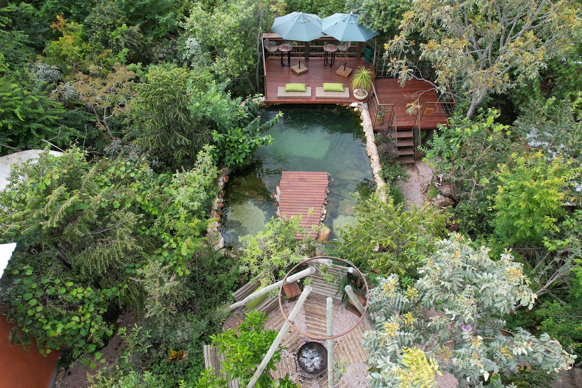 This house is recently built and feels very spacious and beautiful. The walls are made of earth and the location is very privileged. You are surrounded by nature and yet at walking distance from the town. For people who love nature, silence and chilling in the veranda watching toucans and araras. The kitchen is fully equipped. The temperature inside this clay house is always superb! Warm in the cold and cool in the heat! Feel free to enjoy the relaxing dry sauna and natural swimming pool ✨