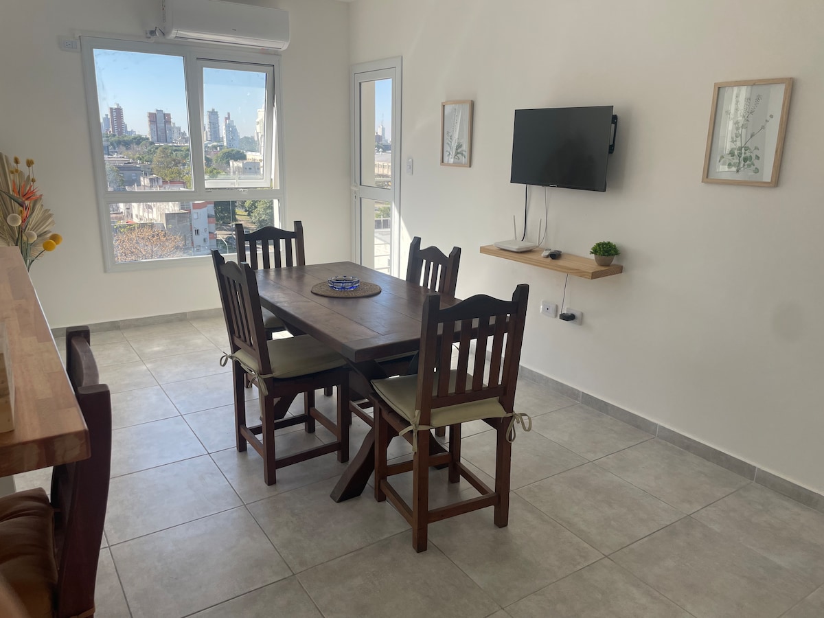 這間美麗的12樓公寓現代、明亮、設備齊全,景觀極佳,提供舒適愉快的住宿所需的一切。 地理位置無與倫比:距離購物區、歷史中心、港口僅幾步之遙,就在經濟學院- Universidad Nacional del Litoral的拐角處。 非常適合商務旅程、留學或旅遊。 我們期待你在聖塔菲的愉快住宿!