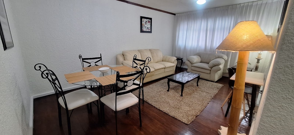 33 平方公尺的單間公寓,非常適合短期前往聖塔菲地區,配有 1 張加大雙人床、智慧電視、服務吧台(微波爐)、智慧電視(可上網)和獨立浴室。 我推薦這個空間給尋找幾晚住宿的旅客。 包括每日清潔和 1 個停車位。 **空間不與任何人共用*** **大樓有 24 小時全天候保安和接待**