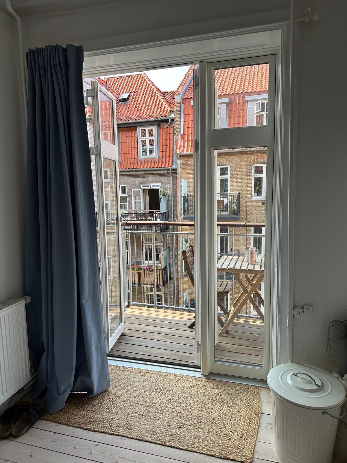 My apartment consists of three, spacious rooms and a kitchen with a dining nook, and you have access to your own, private terrace with seating arrangement. The apartment is situated in a quiet neighbourhood just 15 minutes walk from the city center and only af few minutes from a range of public transportation. The apartment is on the ground floor, so you only need to climb two steps to enter. The bedroom has a european king size bed (160X200 cm)