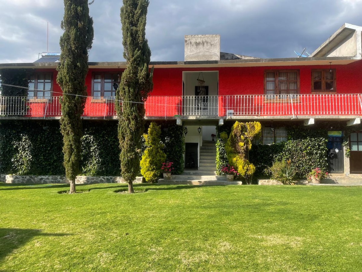 來體驗農場的體驗,在Valle de Bravo和Avándaro附近的氛圍中放鬆身心(僅20分鐘)。 您想在這裡騎馬嗎?我們有馬和一條出色的賽道。 想帶自己的馬來嗎?我們有馬廄和小屋可供使用。 來享受擁有良好網路的農場,來寫一本書或閱讀、製作音樂或聆聽,來與大自然融為一體。 我們有牛、兔子、鴨子、雞、驢山羊和火焰