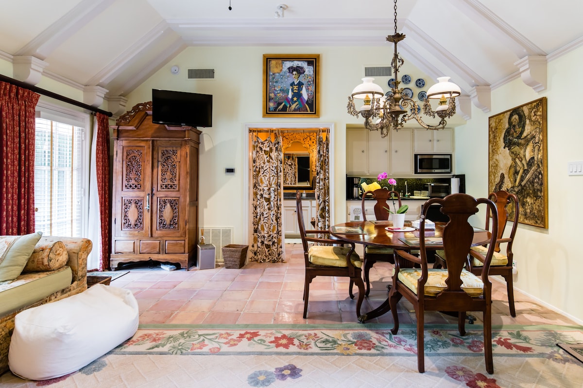 來享受您自己的私人巴厘島風格的客用住房,坐落在達拉斯美麗的普雷斯頓霍洛街區的小溪旁。在達拉斯極為罕見!寬敞的單間公寓配有一張加大雙人床、印尼日光浴床、小廚房、餐桌、步入式衣櫃和全套浴室。它與主屋完全分開,非常私密。千萬不要錯過小溪邊的岩石花園、露臺空間和戶外日光浴床!真正獨特的綠洲,讓您在達拉斯休息和放鬆。