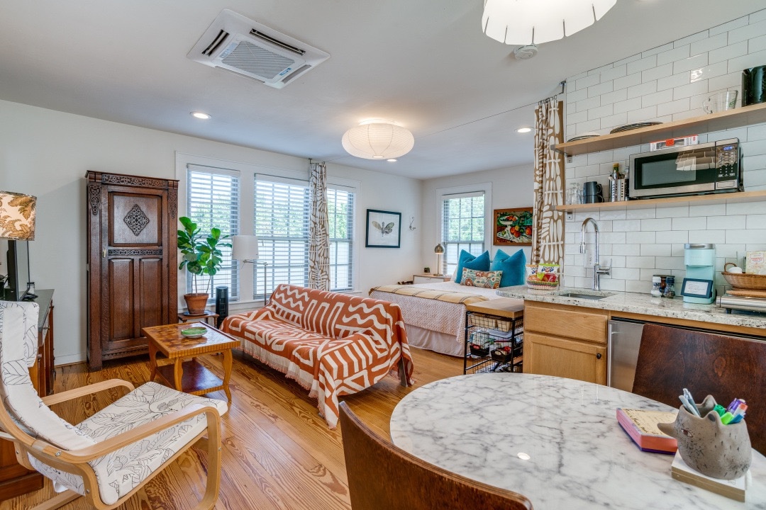 歡迎來到Sun and Oak ,這是一個沐浴在自然光線中的聖地,位於迷人的Elmwood社區,距離充滿活力的Bishop Arts District僅幾分鐘路程。 這間精緻的兩房住宅提供一個寧靜的度假勝地,客人可以在設計精美的空間中放鬆身心,恢復活力。 注意:由於我們的清潔團隊需要時間準備單位,因此我們不提供提前入住服務。