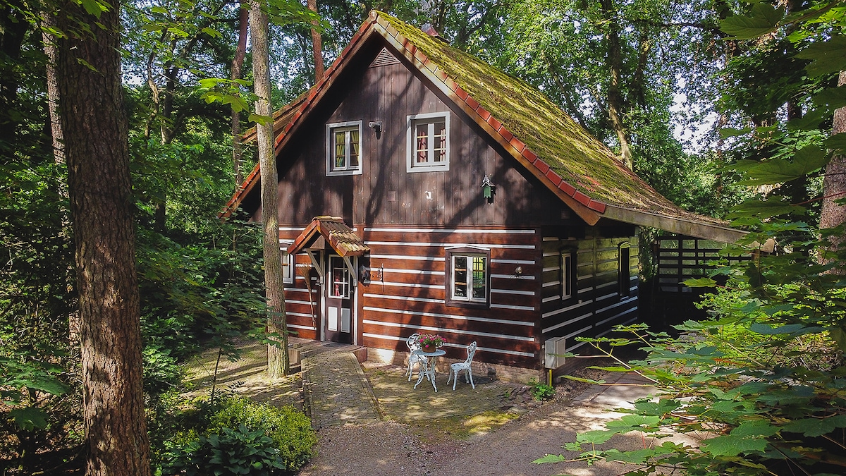 Sfeervolle Canadese Lodge gelegen aan weiland