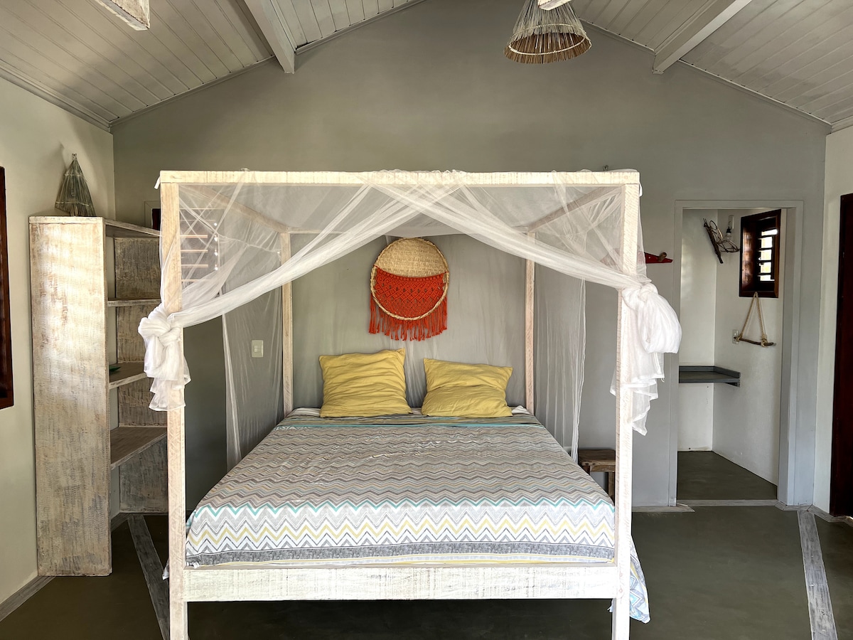 在這個安靜、寬敞的地方,忘記您的煩惱。 Casa Papagaio是尋求隱私和舒適以及與大自然接觸的情侶的絕佳選擇。 房子有空調和風扇的套房,標準雙人牀,帶熱水淋浴的寬敞浴室,設備齊全的廚房,室外區域配有燒烤,桌椅,吊牀和室外淋浴間,可欣賞花園景觀,以及停車位。 我們距離海灘約350公尺,靠近Cabana do Kite !