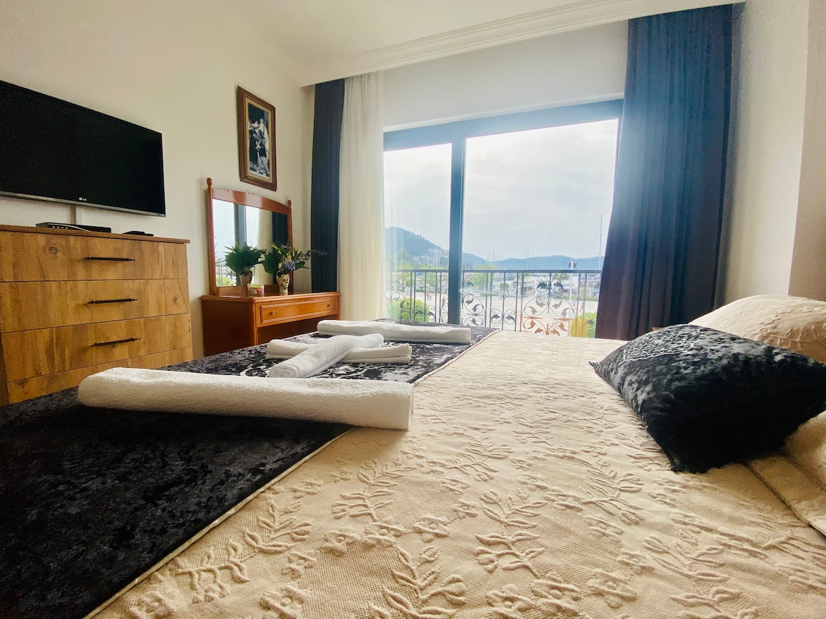 我們的公寓位於Fethiye中心的碼頭。 Fethiye最大的廣場位於Beşkaza。 它最重要的特點是獨特的海景。 我們的公寓位於一棟設有電梯的新大廈內,配備了許多電器,如洗衣機、洗碗機、微波爐、內置烤箱、爐具、冰箱、電視、吹風機、熨斗,以滿足您的需求。它有1間海景和1間普通雙人臥室、1間客廳(可住2人)和一間24小時熱水浴室。