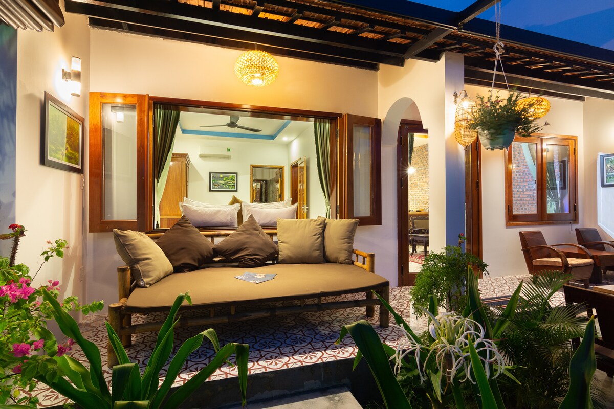 Villa Hội An 5 Phòng Ngủ | Gần Biển An Bàng | Hồ Bơi Riêng & Sân Vườn Tọa lạc tại vị trí lý tưởng, chỉ 400m (5 phút đi bộ) đến bãi biển An Bàng, villa là lựa chọn hoàn hảo cho kỳ nghỉ dưỡng tại Hội An dành cho gia đình/ nhóm bạn. Villa gồm 5 phòng ngủ rộng rãi, 6 giường êm ái, đáp ứng thoải mái cho nhóm đông người, đảm bảo sự riêng tư và tiện nghi. Hồ bơi riêng lớn kết hợp sân vườn xanh mát tạo nên không gian thư giãn chuẩn resort, lý tưởng để nghỉ ngơi và tận hưởng không khí biển trong lành.
