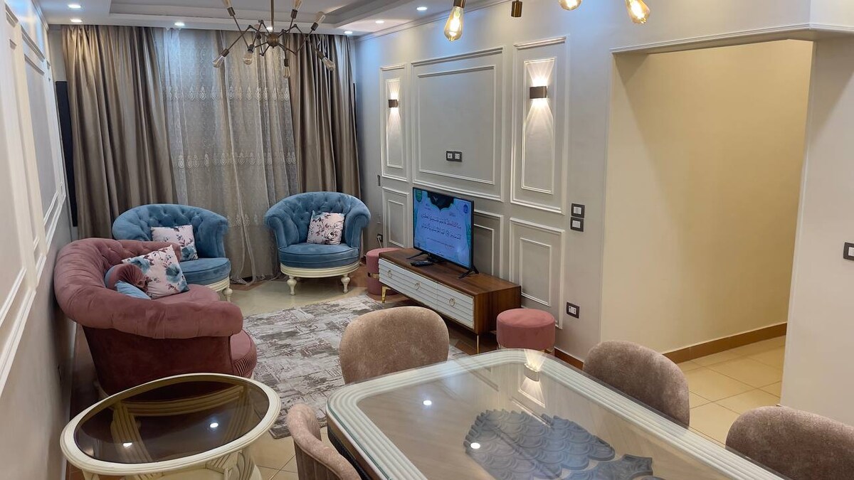 探索我們位於金門大樓的 1 間臥室寶石 - 距離 Maadi 5 分鐘,距離新開羅和納斯爾城 10 分鐘,距離開羅機場和赫利奧波利斯 15 分鐘。設備齊全的美式廚房,時尚的現代和波西米亞氛圍。享受花園景觀、24 小時全天候保全服務,以及咖啡廳、餐廳、家樂福超市甚至醫院等現場設施。配備 65 吋智慧電視,提供串流服務,並透過快速 Wi-Fi 保持聯繫。您的開羅探險之旅從這裡開始!