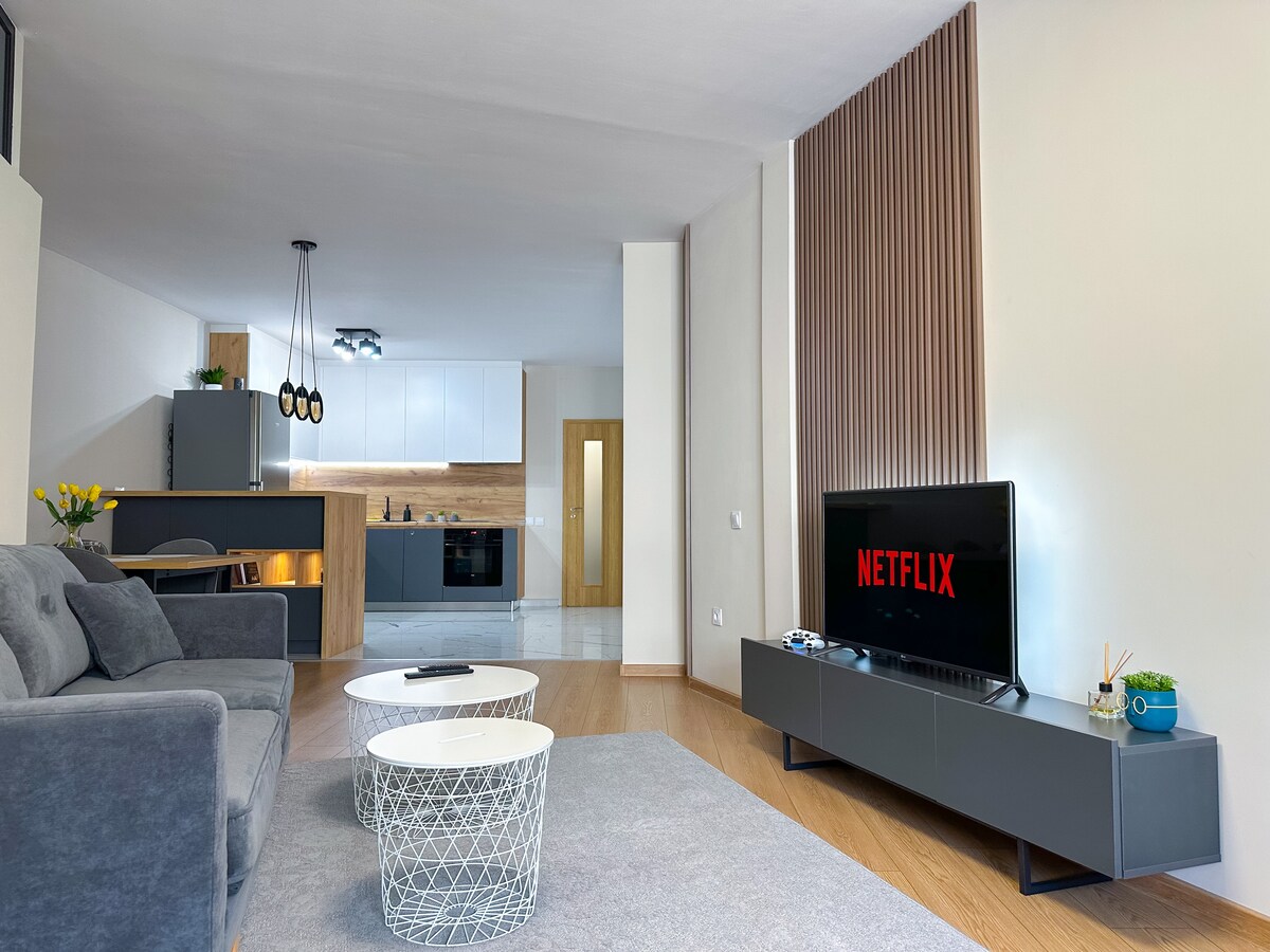 我們的單臥室公寓擁有完全現代化的外觀,現在可以迎接您的到來!精心挑選的優雅室內裝潢,讓您感受像家一般的舒適。公寓設備齊全,配有短期或長期住宿所需的一切。您也可以使用停車位。 整套房源都有強大的Wi-Fi連線。 空間已按照公寓管理衛生標準進行消毒。