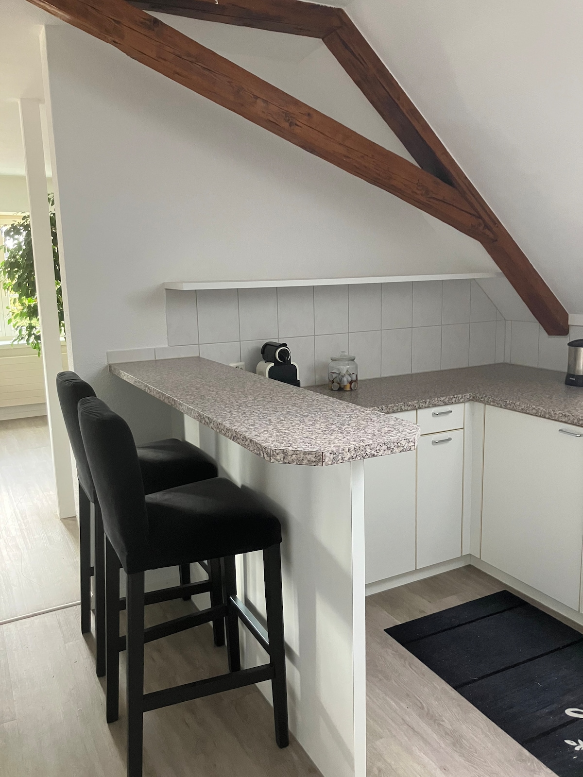 Unsere liebevoll ausgebaute Dachwohnung in einem Bauernhaus aus dem 16.Jh. ist ruhig und zentral gelegen. Bei ausgedehnten Spaziergängen in schönen Wäldern oder am idyllischen Rheinufer mit seinen zahlreichen Badeplätzen kannst du dich erholen. In 5 min erreichst du zu Fuß Restaurants, Supermärkte, Schwimmbad und Bahnhof. Jestetten ist der ideale Ausgangspunkt für Ausflugsziele wie den Schwarzwald, Bodensee/Konstanz, Zürich und die Alpen. Züge nach Zürich und Schaffhausen fahren halbstündlich.