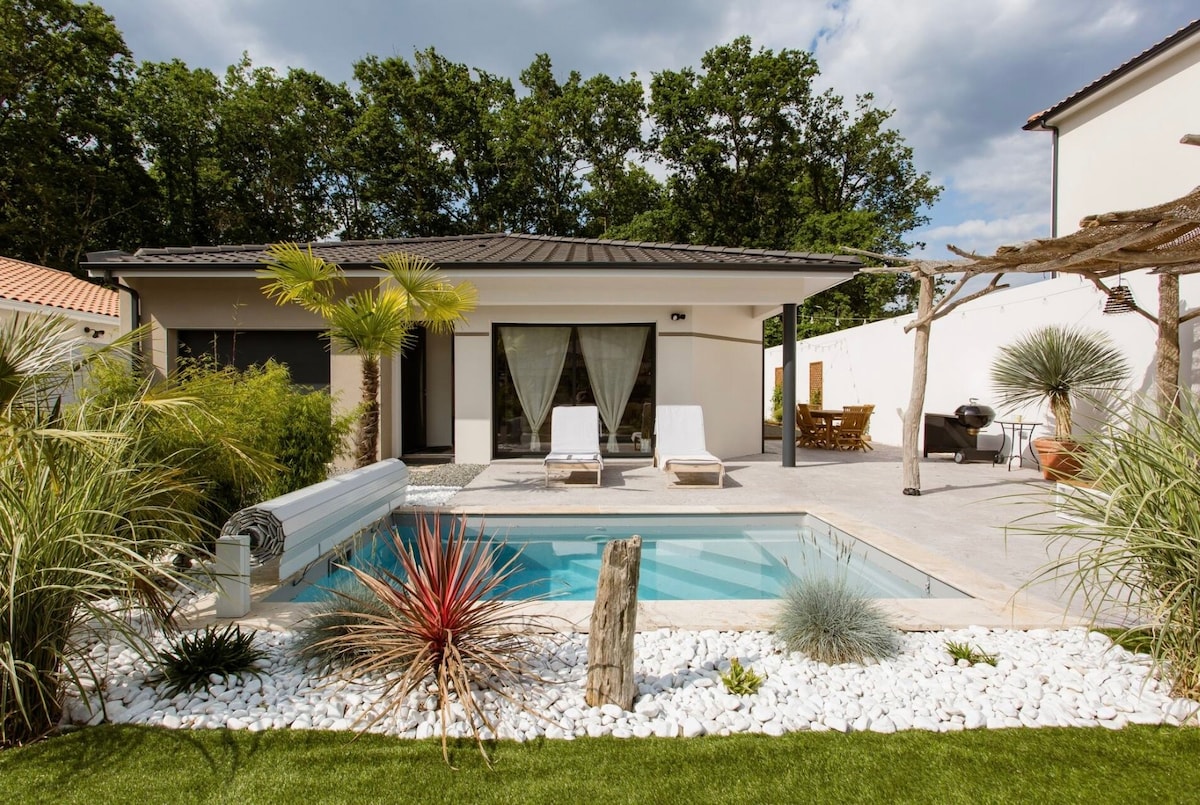 歡迎來到 Pins&Spa 別墅。歡迎來到阿卡雄灣(Bassin d'Arcachon)(距離海灘 2 公里),享受非凡時光,並且靠近大海(15 公里)。這座寬敞舒適的別墅位於死巷盡頭,於 2024 年以阿卡雄灣的精神優雅翻新。您將擁有所有設備,讓您度過一段美好的放鬆時光:5x8 室內泳池、按摩浴缸、保齡球場、木製露臺上的涼亭、空調、烤肉、兒童遊戲、乒乓球……超高速光纖 WiFi。注意:禁止舉辦派對