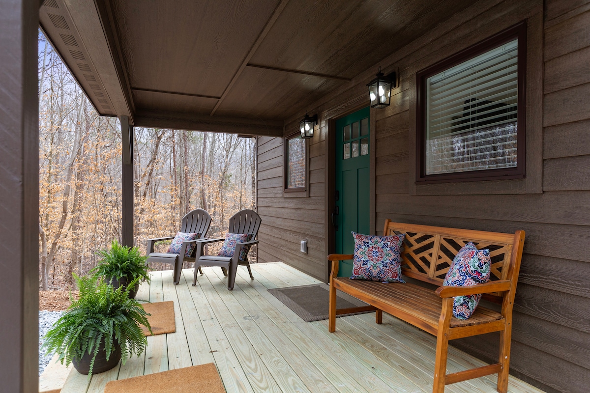 🌿 The Cabin at Fern Gully – Nestled on 36 acres of Camp Moondog's private wildlife sanctuary along the Saluda River. This 650 sq. ft. retreat offers two queen beds, a full bath, and modern comforts in a serene, natural setting just minutes from downtown Greenville, SC. 🌿Loft with Queen Bed 🌿Full Bath with Shower, Toilet, and Washer/Dryer combo 🌿Kitchen with Refrigerator, Sink, and Hot Plate 🌿Wrap around porch for beautiful Forest and River views 🌿Own private river spot with fire pit