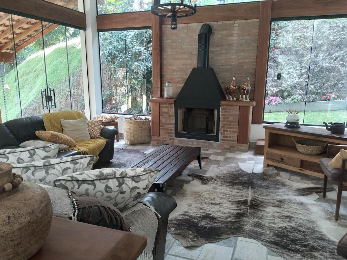 在這個獨特而寧靜的地方放鬆身心! 這座房子坐落在海拔1,200公尺的山脈之間,可欣賞到Andradas市和Mantiqueira山脈的壯麗景色。 一個舒適而溫馨的房子,讓您與家人和朋友共度時光。 附近有美麗的瀑布,交通便利,可以步行欣賞大自然。 輕鬆前往Pico do Gavião和信仰之路的主要道路。