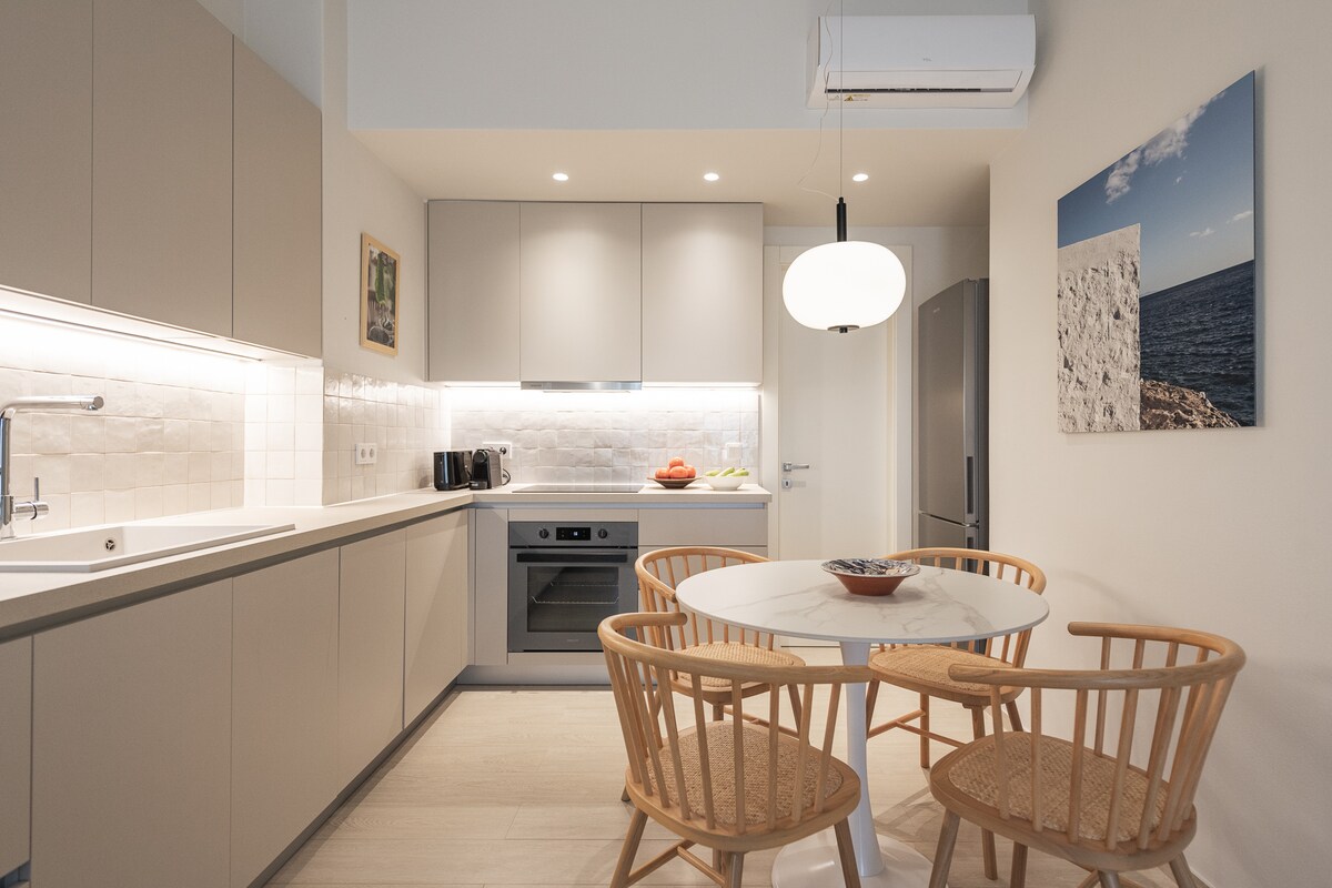 打開海藍色的百葉窗,讓涼爽的微風吹進來,然後在城市混凝土廚房的檯面上,在涼風習習的海濱度假屋中享用小吃。踏上寬敞的綠葉陽臺,悠閒地欣賞日落飲料,欣賞無阻礙的海景! 公寓位於沙灘旁邊,可在早晨游泳,步行2分鐘即可抵達Naousa中心及其主要廣場。商店、餐廳、酒吧和俱樂部都在附近,但該區域非常安靜!