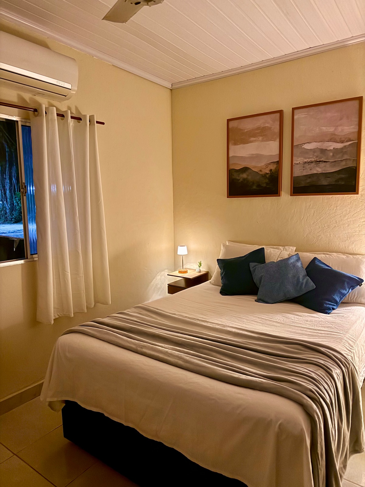 我們的套房是那些想要舒適、寧靜和實用的人的絕佳選擇。 它功能齊全,配備了良好住宿所需的所有用具。 它有空調、分離式天花板風扇、42英寸智能電視(含天空頻道)、Wi-Fi、熱水淋浴、廚房、後院、側面淋浴......此外,地理位置優越,距離所有主要商業/廣場不到100米。 🏡 位置優越 🏡 sossego 🧘 私隱 🍛 廚房 🏞️私人後院
