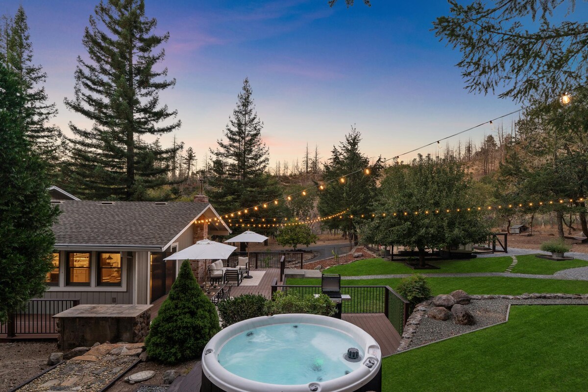 Creekside Sonoma Cottage •露台、按摩浴池和燒烤