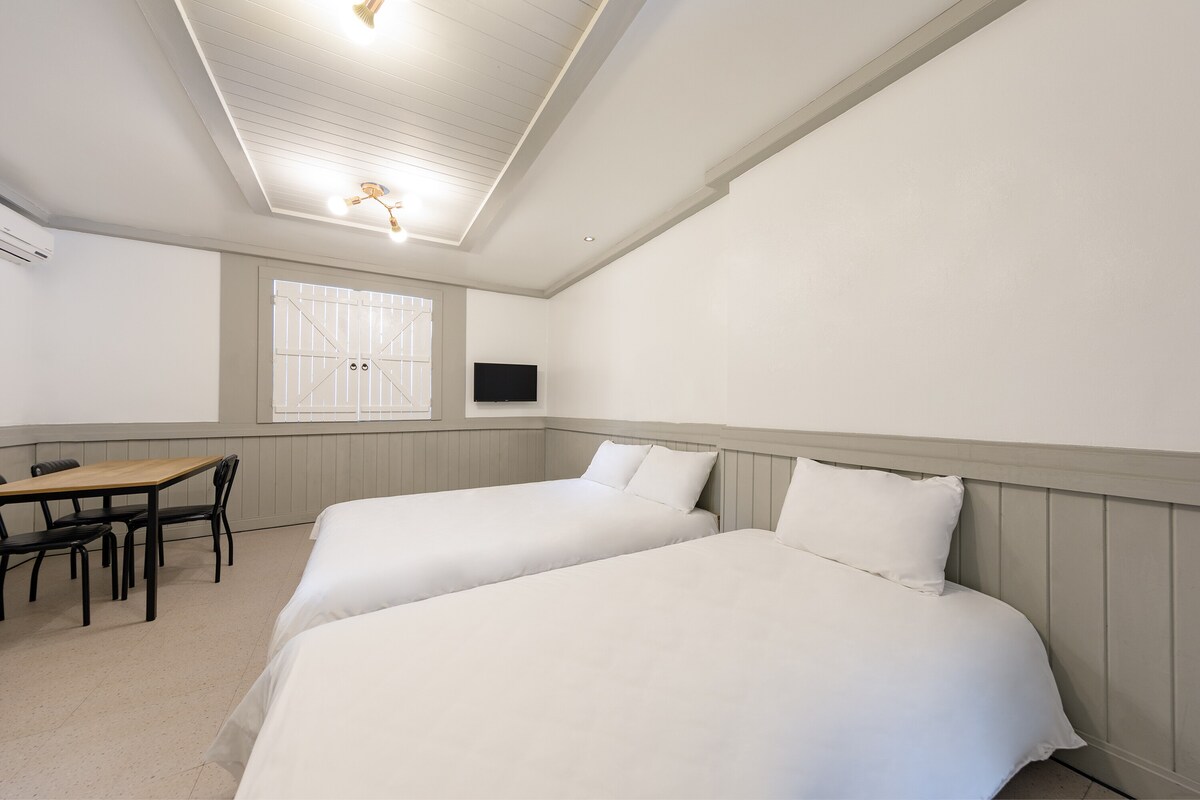 您好,我們是Onda ,我們正在研究和提供各種休息區。 我們希望每個留在這裡的人都能有一個舒適和快樂的時光。 [住宿介紹] 這是一間舒適的房間,採用現代整潔的白色調,距離景浦海灘3分鐘路程,您可以在這裡欣賞江陵( Gangneung )院子裡涼爽的江陵( Gangneung )乾淨的海洋。 我們希望你能感受到你心靈的放鬆,就像你看到綠色的大海一樣。 [房間類型] 單間公寓( 1張大牀、1張單人牀+ 1間浴室)/10平 *牀上用品根據預訂人數提供。