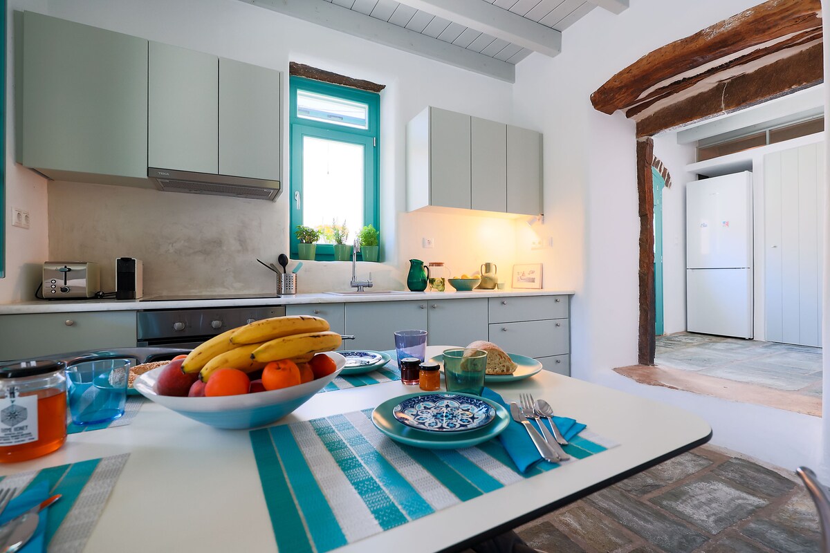 「庭院」是納克索斯島Kourounochori的傳統石屋。 它結合了傳統的建築元素、生物氣候建築和現代舒適性。 它裝飾有愛心和對細節的關注。 它有三間寬敞的臥室,配有舒適的牀、客廳和設備齊全的廚房。 鋪設的庭院可欣賞美拉內斯山谷的美景,在擁有數百年歷史的橄欖樹下放鬆身心。
