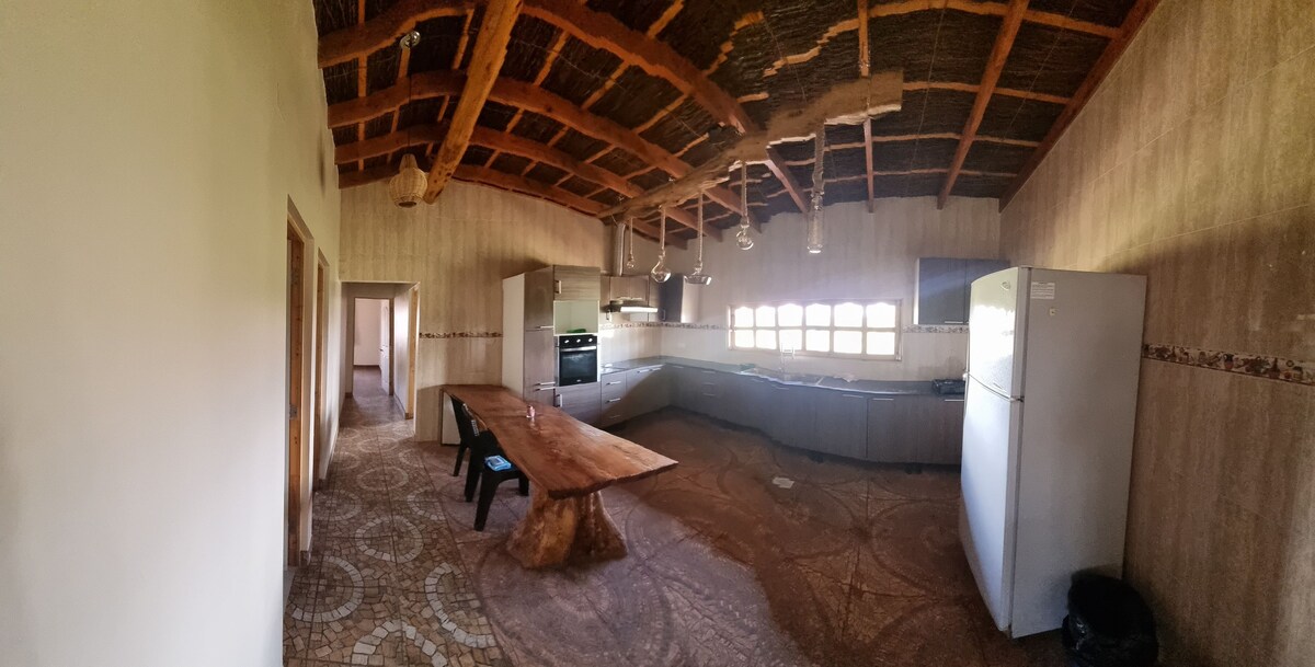 用傳統泥土技術製成的小木屋。 有雙人牀和單人牀。 獨立浴室。共用廚房