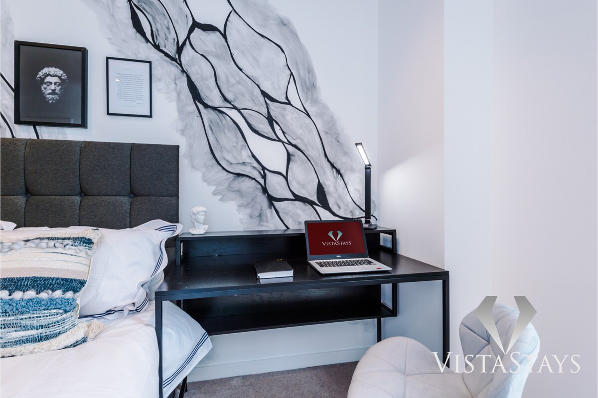 🌐 Vista Stays Short Lets & Serviced Accommodation Manchester🌐 🏠 Stylish 2BDR Apartment on the Northside of Manchester City Centre 🗝 Sleeps Up to 5 Guests 🗝 Bedroom 1 - 1 x Double Bed 🗝 Bedroom 2 - 1 x Double Bed 🗝 Living room - 1 x Sofa Bed 🗝 Free WiFi 🗝 Professionally Cleaned Ideal for: ➞ Contractors ➞ Families & Friends ➞ Long-term Accommodation ➞ Holiday Stays ➞ Business Meetings Add to your Wishlist now!